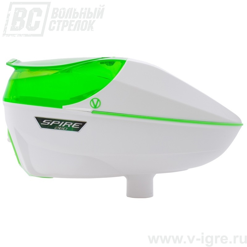 Фидер Virtue Spire 260 современный пейнтбольный фидер, отвечающий запросам самых требовательных игроков. Версия «260», благодаря оригинальной конструкции, вмещает в себя 260 шаров 68 калибра, и выпущена специально для игроков, которые много стреляют. «Spire 260» лёгок, имеет обтекаемую форму и профиль, сопоставимый со стандартными фидерами на 200 шаров. Мягкая крыльчатка, обеспечивает аккуратное обращение с шарами и высокую скорость подачи . Лоадер состоит из трёх блоков и легко разбирается без инструментов. Задняя часть фидера выполнена из прозрачной пластмассы, что позволяет своевременно отслеживать уровень шаров внутри. «Spire» экономно расходует энергию, так как вращение лопастей происходит в момент выстрела благодаря наличию датчика выстрела, и питается от трёх батареек АА. Индикация заряда батареек, а также включение/выключение сопровождаются звуковым сигналом. Помимо использования на «краске», фидер Virtue Spire хорошо подходит для тренировок с реболами (резиновыми шарами). Большое количество цветовых вариаций фидера позволяет создать свой собственный стиль, особенно в сочетании с маской Virtue VIO.
